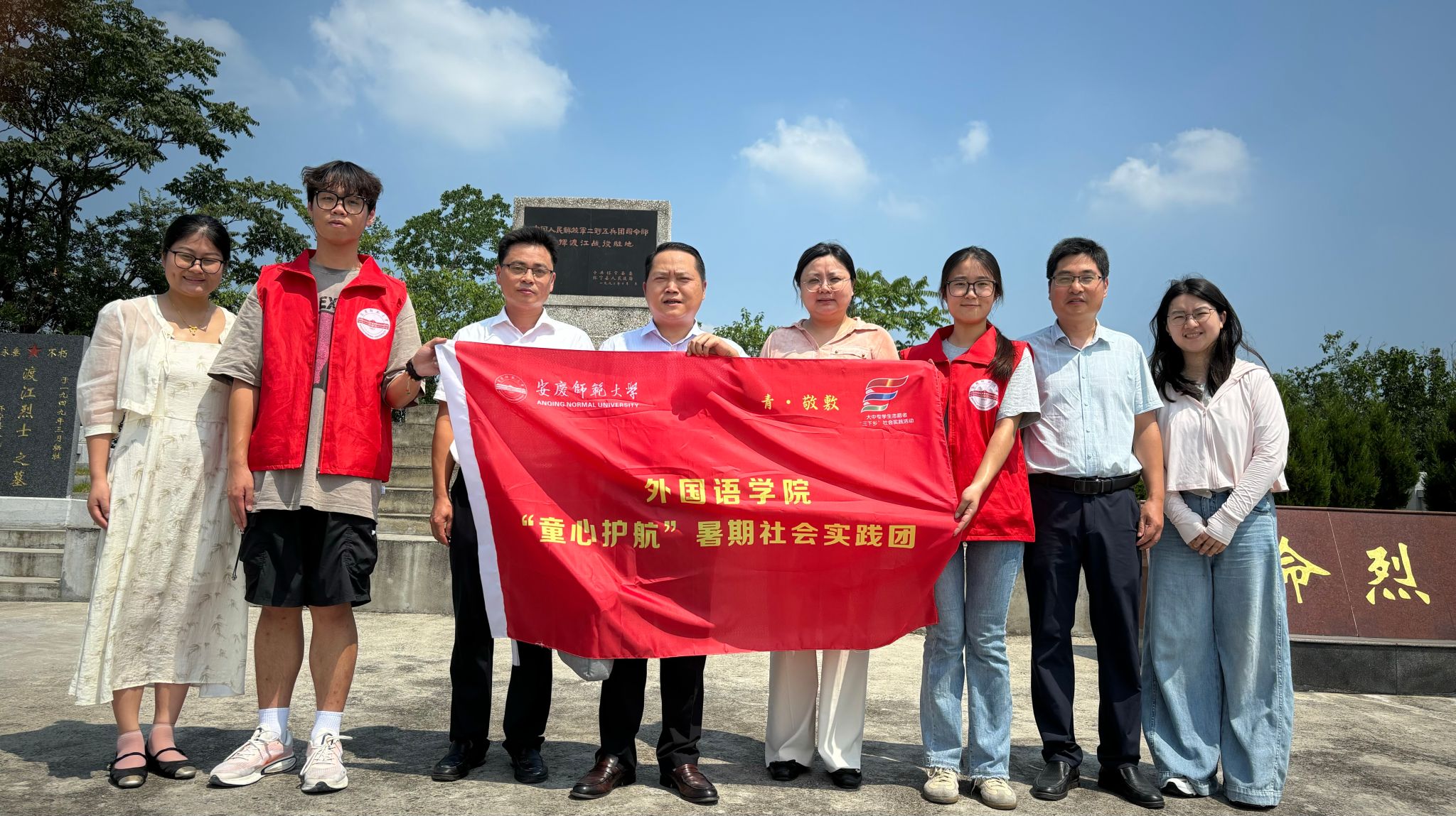 7月7日,365上市公司党委书记徐华胜、党委副书记何媛君一行看望慰问“皖江清风译路行”理论普及宣讲团和“童心护航”教育关爱实践团师生。安庆市红旗社区党委书记郑浩、怀宁县洪铺中心学校校长陈道锋出席慰问。