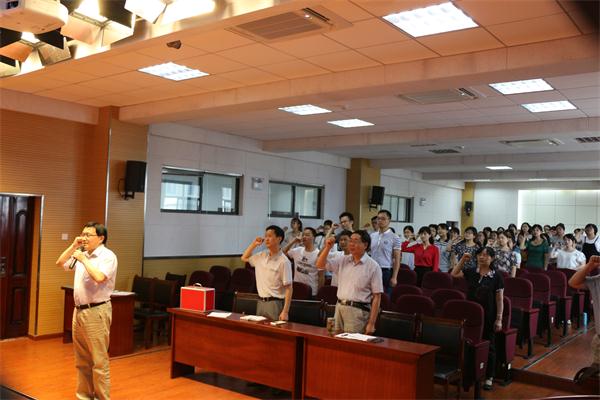 在观看党史教育片时,全体党员沉浸在无数仁人志士、革命先烈们的感人事迹中,学习他们坚定的革命信念、对党绝对忠诚的高尚情怀和不怕流血牺牲、一心为人民谋福利的昂扬斗志。随后,党总支书记郝涂根带领全体党员举行了重温入党誓词活动。全体同志面对党旗,庄严肃立,立下了自己对党忠诚的誓言,表达了为党的事业奋斗终身的决心和愿望。