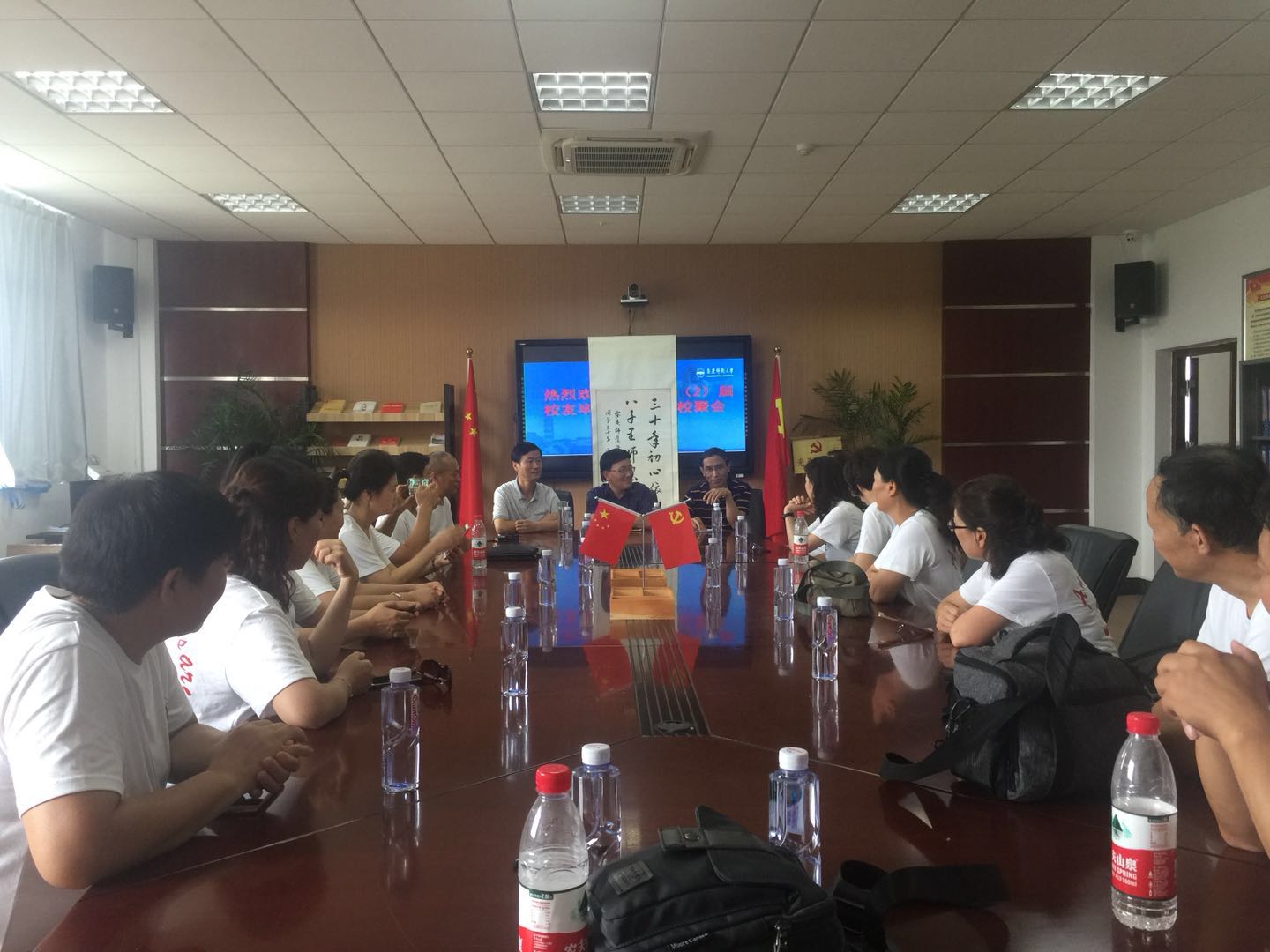 8月21日,365上市公司党政领导在会议室热情接待参加外语系88(2)届毕业三十周年返校聚会的校友。