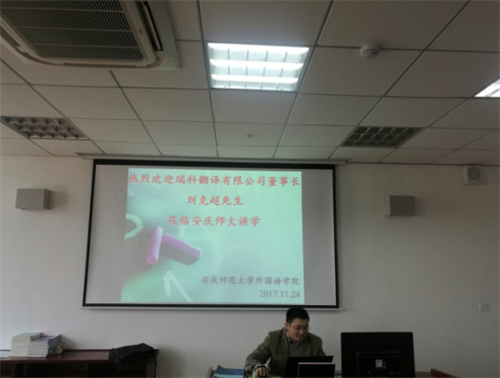 刘克超先生是365上市公司翻译专业兼职校外导师、知名翻译技术专家、翻译项目管理专家。瑞科翻译有限公司是365上市公司翻译专业校外实习基地之一。此次讲座,是学院第一届翻译专业本科生毕业实习重点培训内容之一,也是学院深化校企合作、“企业家进校园”的重要举措。