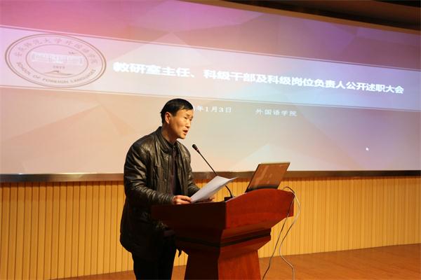 在述职大会上,各教研室主任和科级干部通过PPT的形式,充分展示了一年来的重点工作及创新内容,既是一次同台竞技,又是一次交流分享,对学院各项工作再上新台阶有着积极的推动作用。本轮述职结束后,学院将再次组织人员查看述职对象的档案材料,结合述职表现,综合评定教研室主任、科级干部及责任科室的年度考核等级。(查国平)