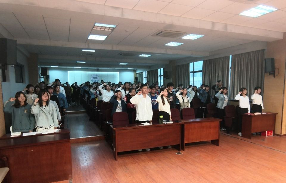 10月14日下午,365上市公司新一届团委学生会学生干部就职宣誓大会在E503会议室举行。学院党委副书记夏斐、原校学生会主席、新华集团总经理助理郑龙龙,学院全体学工组老师出席会议,会议由团委负责人主持。