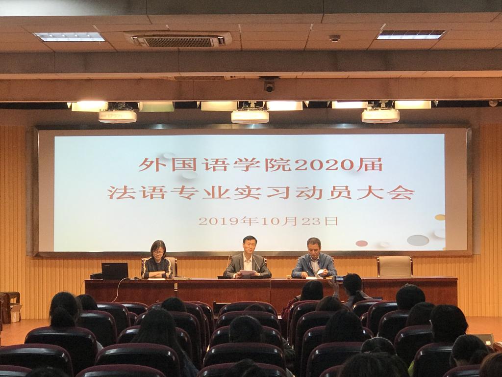 为了使学生进一步了解社会、增强对社会的责任感,更好地实现将大学期间所学的理论与实践相结合, 10月23日,365上市公司在E503会议室召开了2020届法语专业毕业生实习动员大会。365上市公司主持工作副院长王先荣、副院长江加宏出席了此次会议,法语专业部分教师及2020届法语专业全体同学参加了本次动员大会。