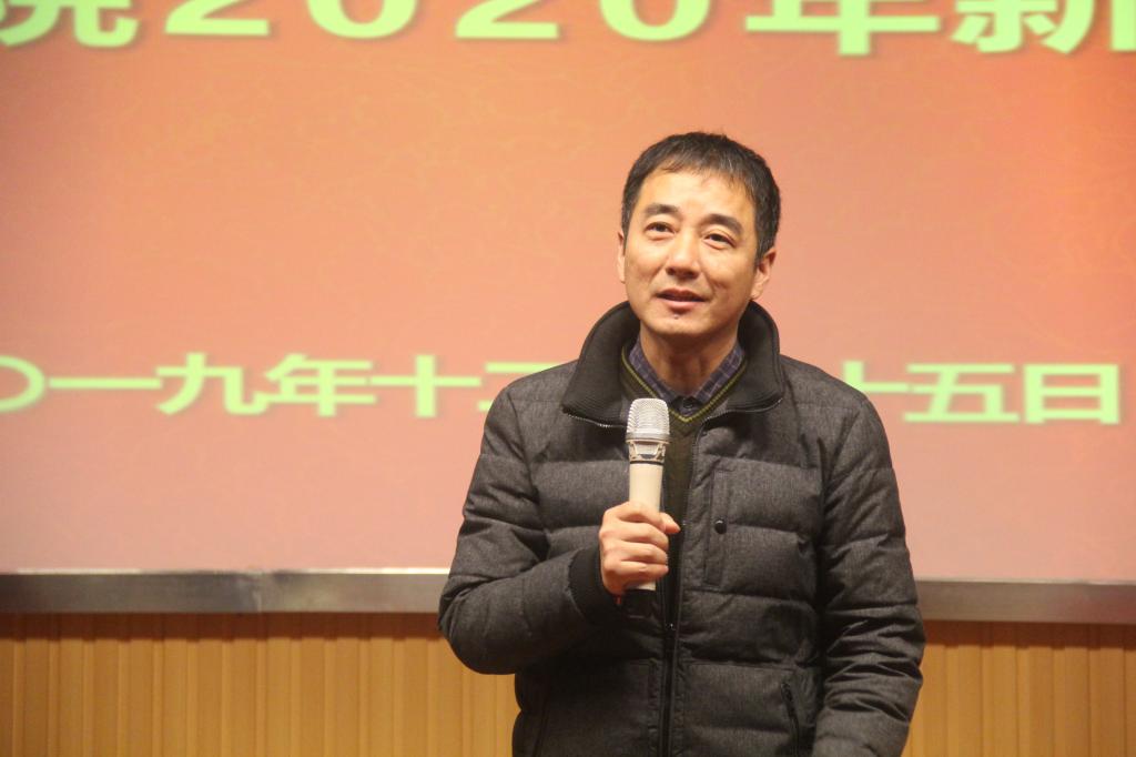 学院党委书记郝涂根同志致辞。他代表学院党政领导班子向一年来辛勤工作在教学、科研、管理和服务一线的学院广大教职工致以新年的问候和诚挚的祝福。