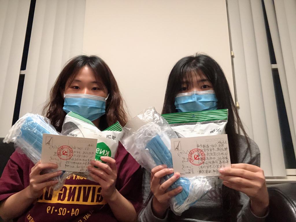 3月,美国新冠疫情全面爆发。张郡、王乐淑两位同学自觉按照国内的防疫要求,减少外出,在宿舍里隔离防疫,并坚持通过网络开展学习。在一次和学院老师交流时两位同学表达了在美国难以购买到口罩的困难,而且国内快递也很难寄到美国。
