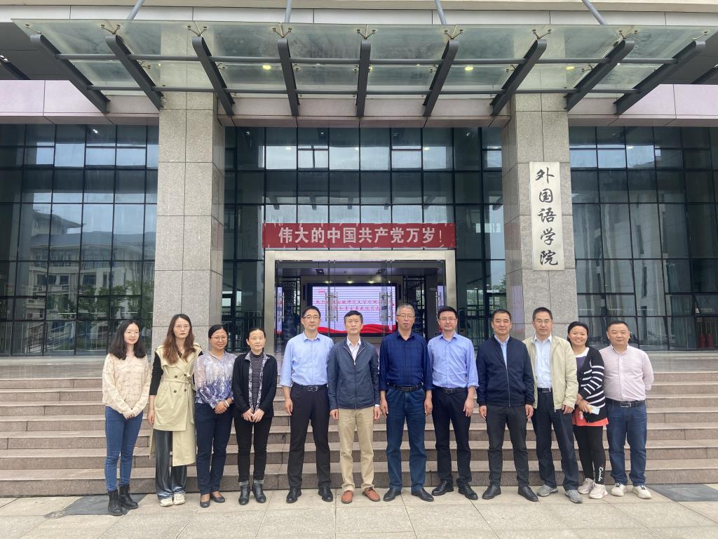 王先荣院长首先对张孝荣一行来我院调研表示欢迎,张孝荣对学院的热情接待表示了感谢,并阐明了本次调研的内容:英语师范专业认证、国家级一流课程建设和申报、课程思政建设等。王先荣在介绍我院办学历史、专业建设、人才培养等情况后,重点就师范专业认证中的人才培养方案修订、自评报告撰写、支撑材料准备等经验和做法做了细致分享;然后就国家级一流课程申报、思政课程建设等进行了深入交流。会后,张孝荣一行参观了学院文化布置、教学设施、自主学习中心等。