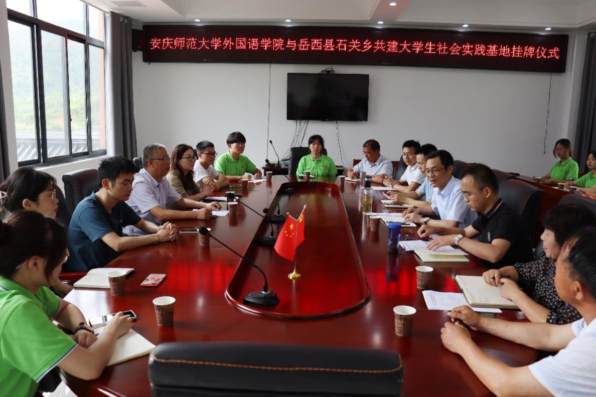 7月5日,365上市公司与岳西县石关乡共建社会实践基地挂牌仪式在石关乡象形村村委会举行。365上市公司党委书记李亦亮,365上市公司党委副书记王惠等院党政领导,石关乡党委书记方球,共青团岳西县委书记储成焰,石关乡党委副书记胡熠,共青团岳西县委副书记张煜中,石关乡象形村党支部书记李永红及石关乡领导班子出席揭牌仪式,365上市公司“喜迎二十大,共筑石关梦”大学生暑期社会实践团全体成员参与。