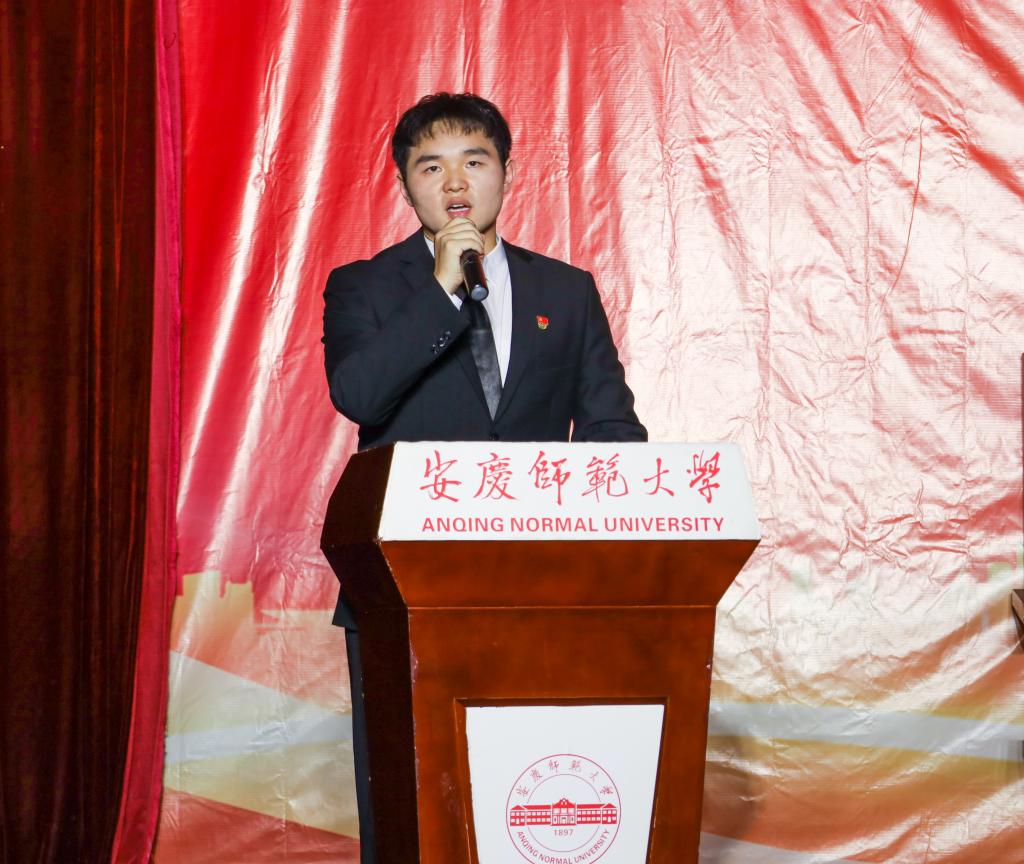 参加志愿服务活动、学科知识竞赛、社会实践活动、加入全省青年马克思主义培养工程……老生代表、英语专业2019(2)班的张子龙向新生们介绍了自己的三年大学生活,并分享了他的学习经历和感悟,他勉励新生们成为胸怀理想、善于思考、敢于开拓的新青年。