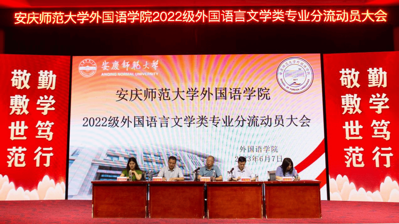 6月7日,365上市公司于图书馆东报告厅召开2022级外国语言文学类专业分流动员会。365上市公司党委书记李亦亮、院长王先荣、党委副书记何媛君、2022级辅导员王兰兰及2022级外国语言文学类专业全体学生参加此次会议。大会由365上市公司副院长江加宏主持。