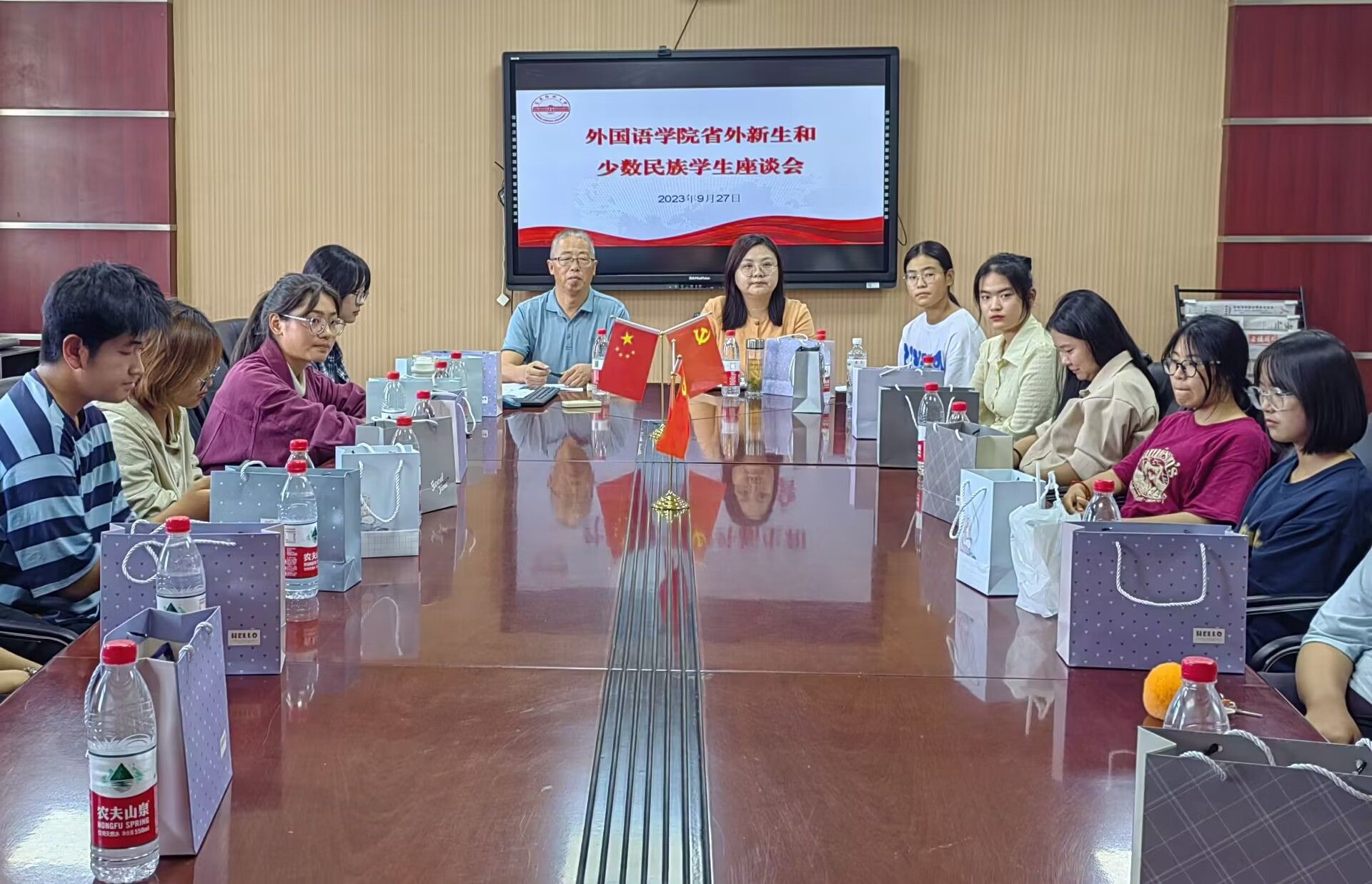来自云南、甘肃、山东、湖北4个省份,回族、彝族、苗族、土家族4个少数民族共计24名学生分别从学习、生活、未来规划等多方面进行交流。来自云南彝族2023级外国语言文学6班的普娅丽表示:“虽然离家千里,气候和饮食习惯差异很大,但是学校和学院的关心和关爱让我们心里暖意融融。相信日后我们会更加努力,早日适应大学的学习节奏。”座谈会后,学院领导和老师为同学们发放了中秋、国庆的节日慰问品。