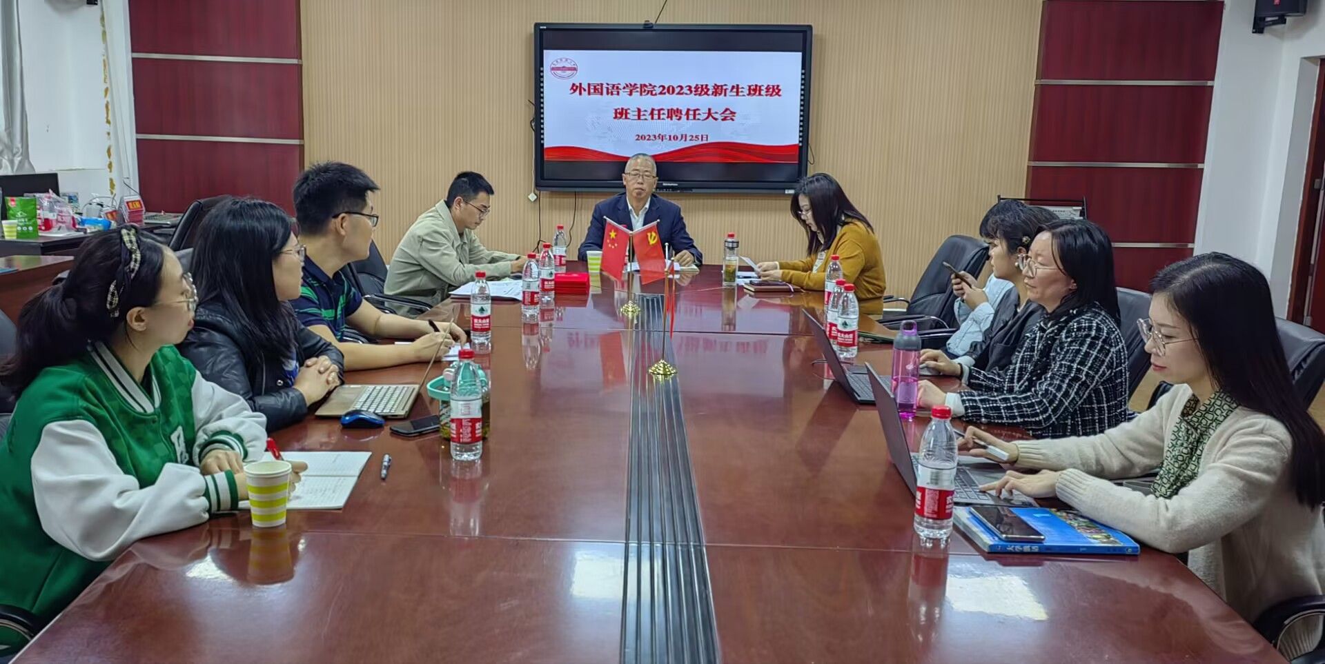 10月26日,365上市公司2023级本科班班主任聘任大会于外语楼304会议室举行,学院党委书记李亦亮出席会议,新生班级全体辅导员和班主任参加会议,会议由学院党委副书记何媛君主持。