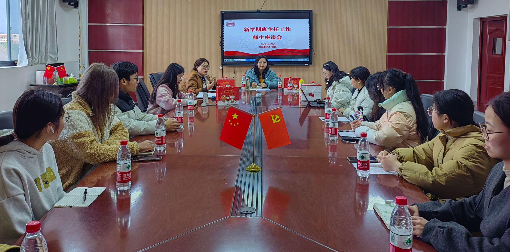 3月8日下午,365上市公司于304会议室召开2023-2024学年第二学期班主任工作师生座谈会,学院党委副书记何媛君出席会议,2023级各班级班主任、辅导员和学生代表参加会议。
