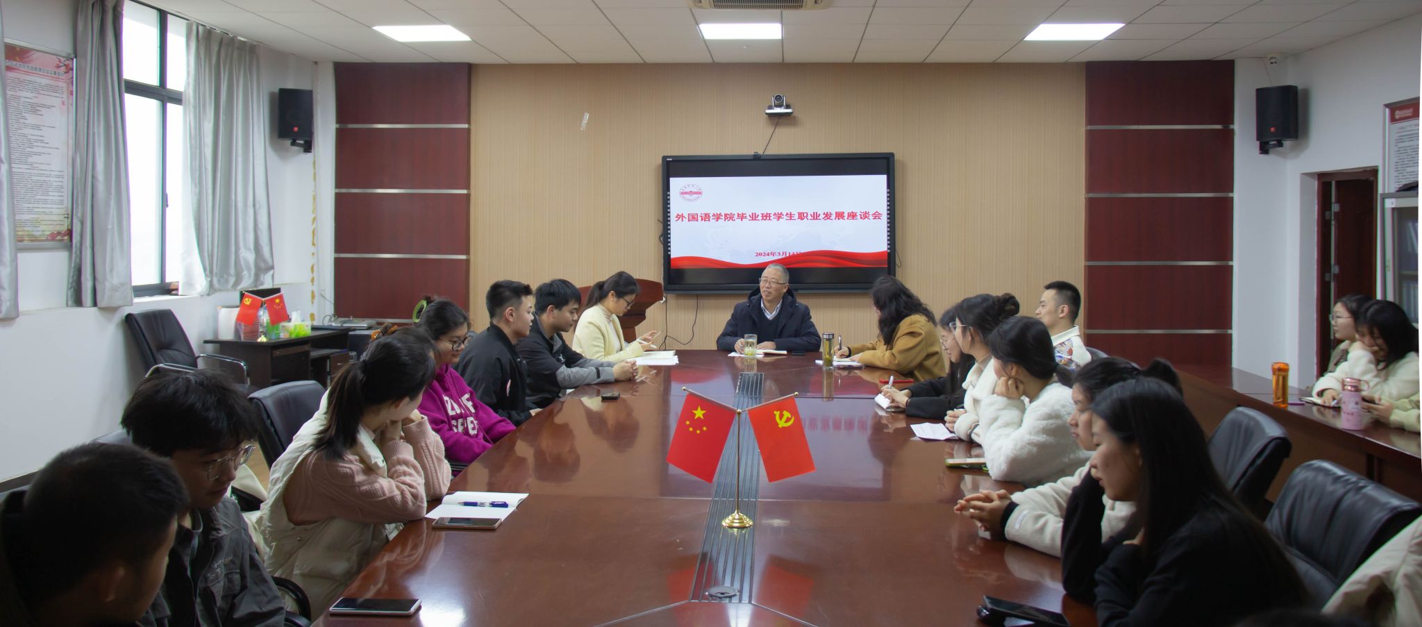 李亦亮首先强调了就业是民生之本,对于国家事业和社会发展具有重要意义,同时指出了就业是个人自我实现和家庭健康发展的需要。其次,他全面、深入分析了当前严峻的就业形势,通过列举生动案例,多角度引导毕业生理性进行职业选择,树立正确的就业观念。会上,李亦亮充分肯定了学院毕业生们的综合素质,他指出同学们应当要提振就业信心,以英语为工具进行多元化就业,鼓励毕业生们先就业再择业,在实践中不断提升自己的职业能力。李亦亮还从就业准备、考研复试、考研调剂等方面对学生作了具体指导,他希望毕业生们在就业和升学中能够打开眼界,积极行动,精心准备,收获成功。