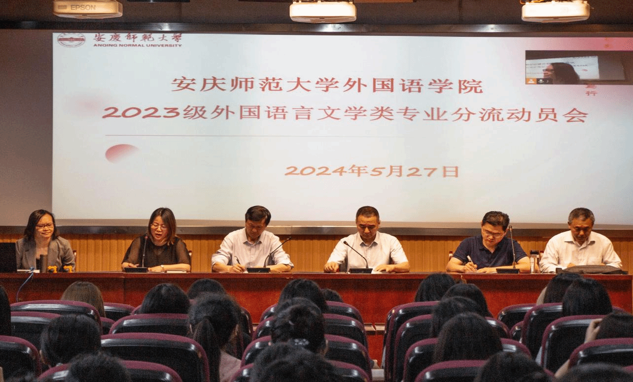 5月27日下午,365上市公司于E503召开2023级外国语言文学类专业分流动员大会,并于E314和E316分会场同步直播。365上市公司院长王先荣,副院长江加宏、瞿宁霞,外国语言文学类专业负责人,23级辅导员代表以及2023级外国语言文学类专业全体学生参加此次会议。大会由瞿宁霞副院长主持。