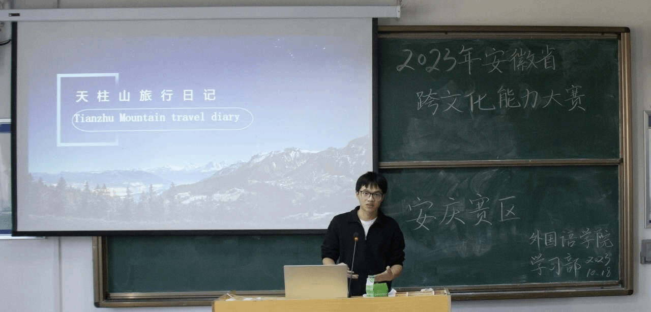 选拔赛分线上线下两个环节进行。选手们首先在学习通平台在线参加跨文化交际能力知识测试,之后进行线下个人展示演讲并回答提问。现场亮点不断,选手们结合自身经历和文化差异通过课件展示、视频展示等多元方式将跨文化冲突呈现出来,充分展现出地道流利的英语语言素养和新时代青年的中国情怀与国际视野。