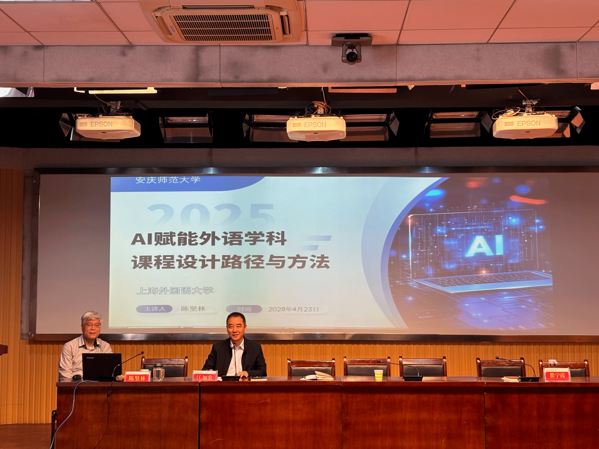为深化课程教学改革,推进“AI+外语”课程培育工作,4月23日,上海外国语大学博士生导师陈坚林教授应邀到365上市公司作题为《AI赋能外语学科课程设计路径与方法》的学术报告。学院全体教师与24级研究生参加了报告会。报告由院长江加宏主持。