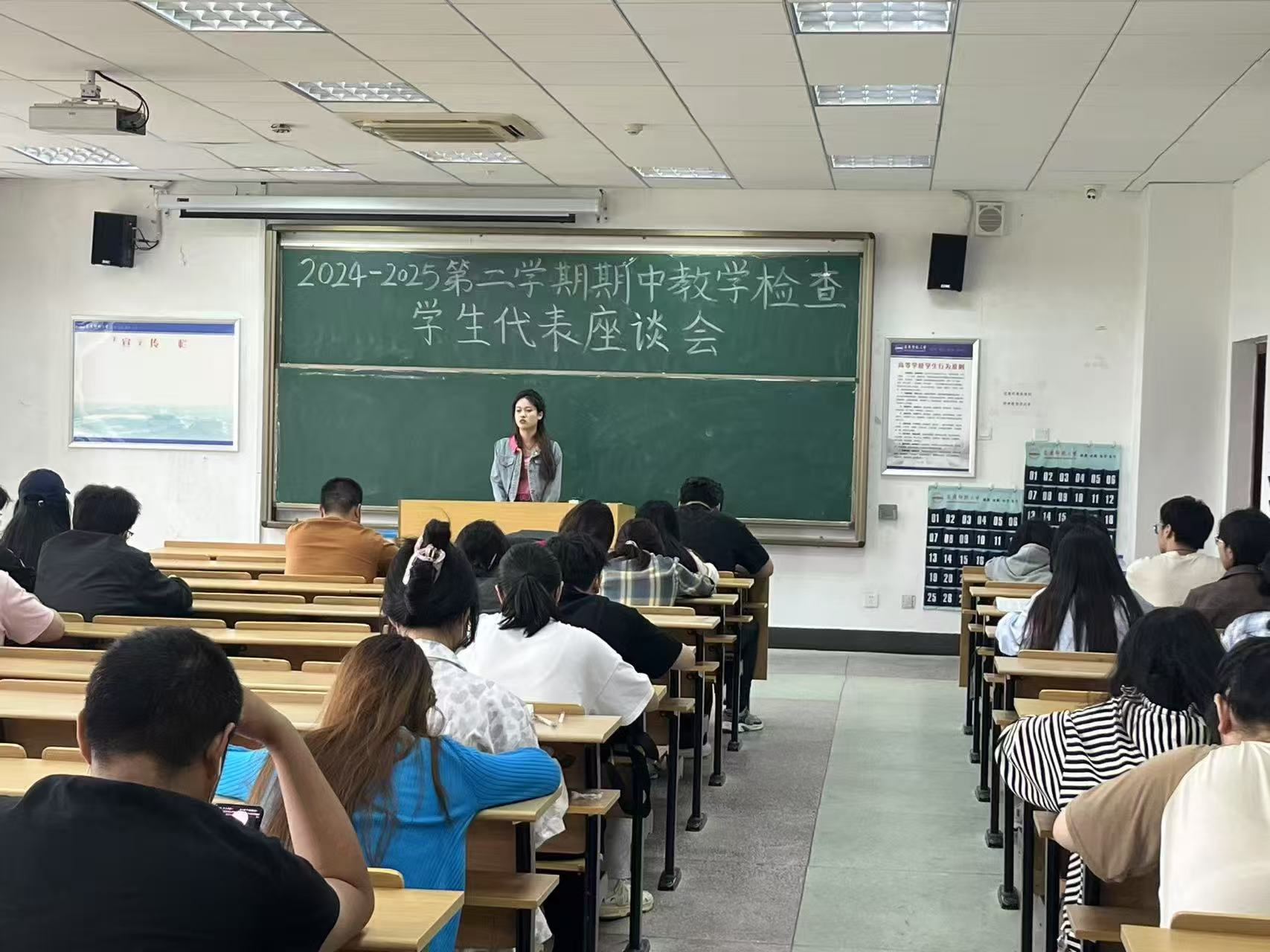 为深入了解学期中本科教学工作情况,进一步强化教学质量监控,切实提升教学水平,根据教务处《关于开展 2024-2025 学年第二学期期中教学检查工作的通知》文件要求,365上市公司于4月中下旬分别在 E304 会议室和 E314 教室召开期中教学检查师生代表座谈会。学院党委副书记、副院长、专业课和公共课教师代表、非英语专业学生代表以及外语类专业学生代表参加了会议。