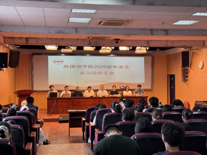 此次实习动员大会的召开,不仅清晰界定了毕业实习在学院人才培养体系中的重要地位,更搭建起“学院--毕业生--实习单位”三方联动的桥梁。通过明确目标、细化安排、凝聚共识,为学院培养“懂外语、善实践、能担当”的高素质应用型人才夯实基础,也为 2026 届毕业生顺利开启职场第一步提供了精准指引。