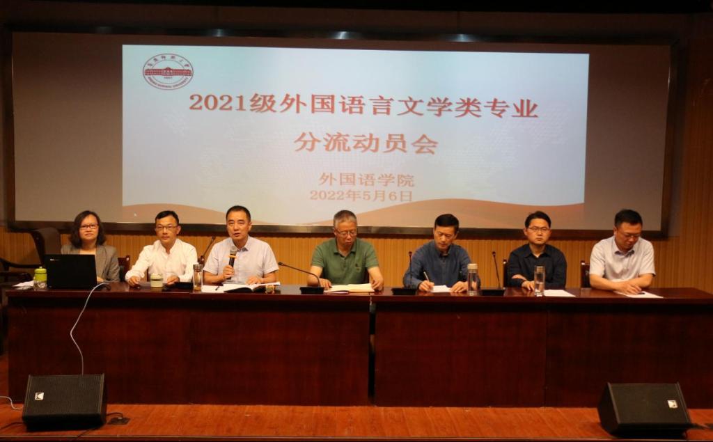 为深化学生专业认知,稳步推进分流工作,5月6日下午,365上市公司于E503召开2021级外国语言文学类专业分流动员大会,同时设立E314与E316分会场。365上市公司党委书记李亦亮、院长王先荣、各专业负责人及2021级外国语言文学类专业全体学生参加本次会议。大会由365上市公司副院长江加宏主持。