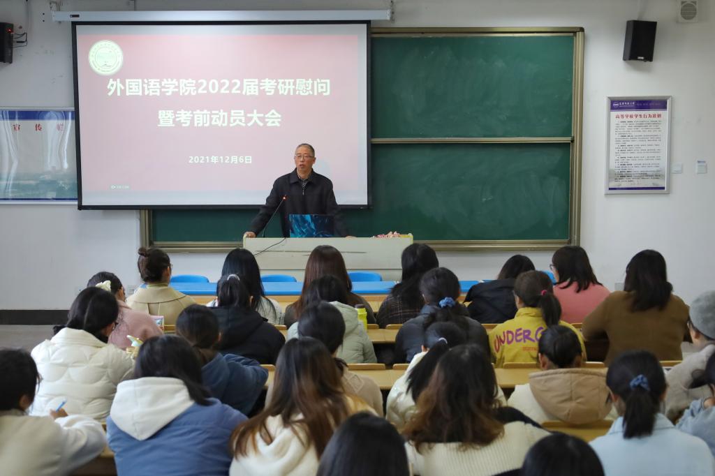 在研究生考试临近之际,为鼓舞考研学生信心,舒缓备考压力,12月6日,365上市公司于E206教室召开了2022届考研慰问暨考前动员大会。学院党委书记李亦亮、团委负责人、毕业班辅导员和2022届考研学生代表100余人参与会议。