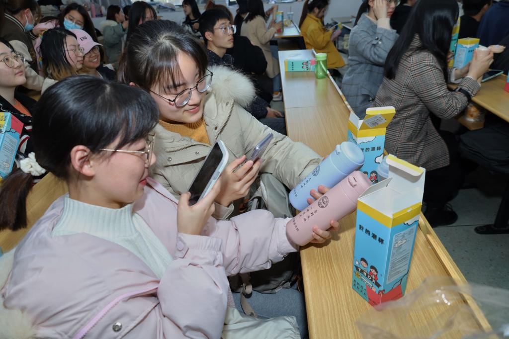 会议最后,学院还为每名考研学子发放了专属定制的保温杯。“感谢学院为我们专属定制的保温杯,很惊喜也很暖心,我一定全力以赴争取‘一战成硕’。”师范英语专业2018(1)班的郭婉茹表示,考研进入最后冲刺阶段,复习备考压力较大,有时会感到比较焦虑。但是今天召开的慰问和动员大会对她起到了很好的鼓舞作用,也坚定了自己考研信心。