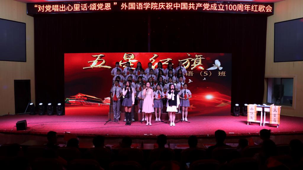 现场12个班级都在用自己的方式演绎着红歌。外国语言文学类专业2020(1)班挥动党旗,唱响《鲜红的党旗》;英语专业2019(5)班编排手势舞蹈,高唱《五星红旗》;法语专业2019级以独舞开场,用歌声弘扬抗疫精神,表达在党的领导下《山河无恙在我胸》……“我们从3月下旬开始筹备,以班级为单位练习红歌并通过抽签决定各班所唱曲目。经过初赛选拔,选出12个班级展演此次红歌会。”负责人英语专业2019(4)班的周馨悦表示。