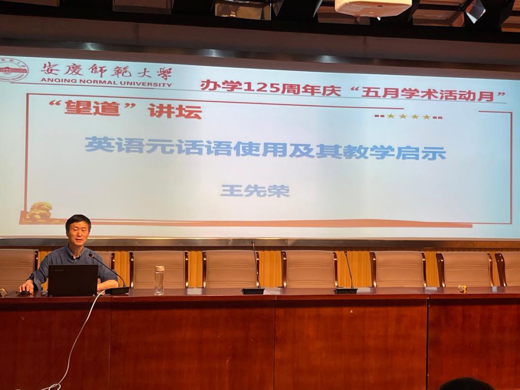 为庆祝英国上市官网365办学125周年,进一步营造良好的学术风气和浓厚的学术氛围,2022年5月29日下午,365上市公司举办“五月学术活动月”及“望道”讲坛第一期活动,邀请院长、硕士生导师王先荣教授在E503会议室作了题为“英语元话语使用及其教学启示”的学术报告。本次报告由学校科研处、研究生院、365上市公司共同主办。外国语副院长江加宏教授主持报告会,365上市公司教师、硕士研究生和本科生共100余人聆听了报告。