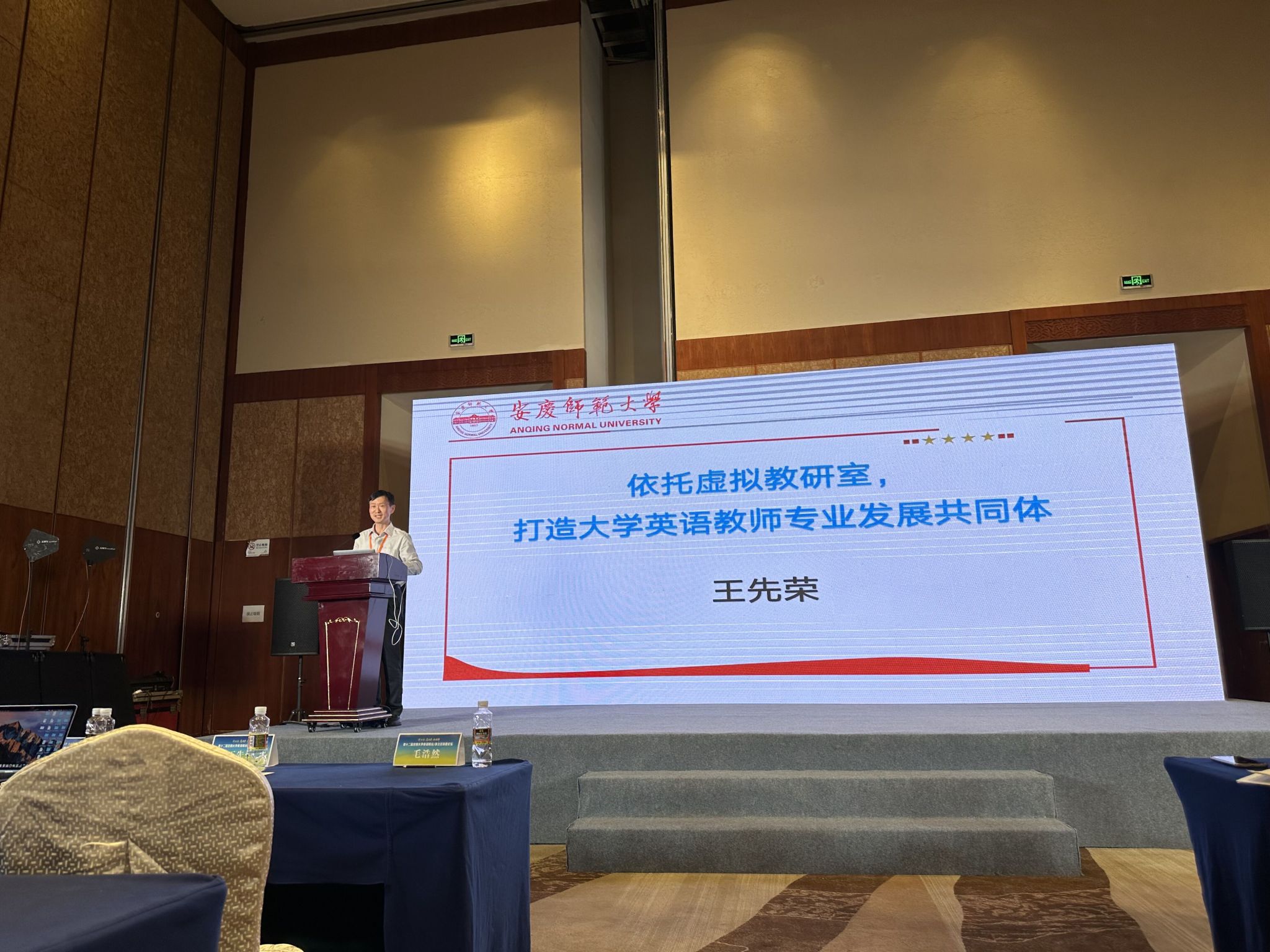 王先荣在“教师为本,推进共同体建设”平行论坛上做了题为“依托虚拟教研室,打造大学英语教师专业发展共同体”的专题报告。他介绍了虚拟教研室建设的背景、内涵、内容和原则,并着重从“创新组织模式,筑牢群体认同基础;依托智慧平台,打造教学资源共建共享共同体;开展校际课程共建,建设教学协同共同体;打造品牌教研活动,建设教研创新共同体”四个方面与参会代表们分享了大学英语虚拟教研室"安徽实践"经验,阐明了虚拟教研室建设在以教师发展为引领的教育教学改革新时代所发挥的积极作用。