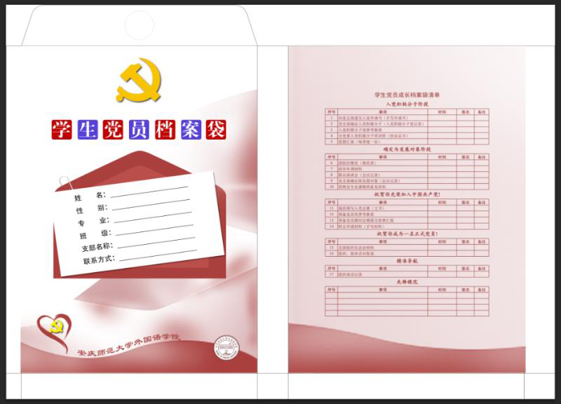 为落实全面从严治党,切实加强基层党组织标准化建设,严把党员发展质量、规范党员发展过程监督、强化党建档案制度管理,针对党建督查中暴露出的党员发展问题,365上市公司党委近期设计印制了“学生党员成长档案袋”。