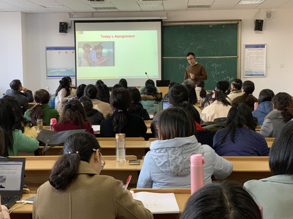 伍老师首先向老师们具体介绍了本次智慧教学公开课的课程内容及课程设计,围绕“如何成为一名高效的大学英语学习者”主题,引导学生探讨如何打破跨文化交际中的刻板印象(How to Break Stereotypes in Cross-Cultural Communication)。他将雨课堂智慧教学小程序的各项功能充分融入在教学的各个环节中。完美展示了课前、课中、课后各个教学环节的有效衔接,整堂课的特征可以概括为“生动、互动、主动”三个关键词,教学理念的中心实现了从教师的“教”到学生的“学”的理想转换,充分利用了雨课堂小程序的各项智慧功能,加强了任课教师与学生的互动,取得了非常理想的教学效果。