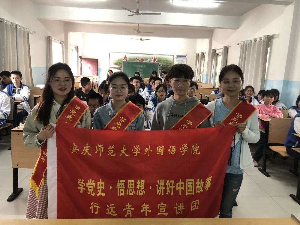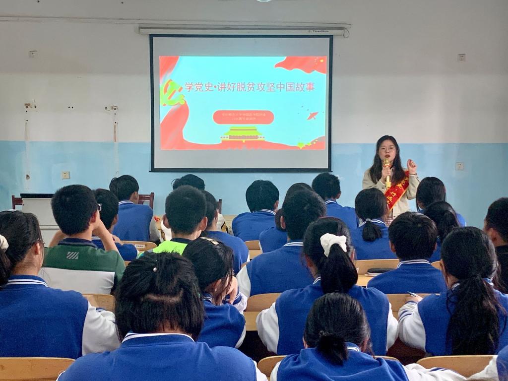 5月20日,365上市公司研究生党支部“行远青年宣讲团”来到安庆市大龙山第一中学开展“党史进课堂”活动,为初二年级的50位学生做党史宣讲,本次宣讲的主题是“弘扬改革创新精神,讲好安徽脱贫故事”。