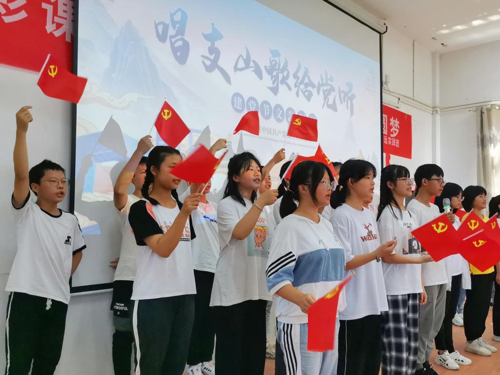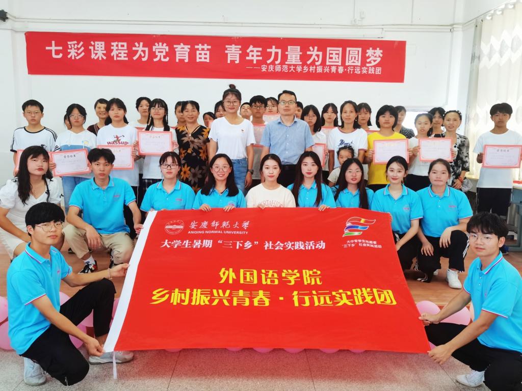 7月14日至22日,英国上市官网365乡村振兴青春·行远实践团走进望江县新坝中学,开展了为期九天的支教活动。此次支教活动将七彩课堂和党史学习教育相结合,通过日常教学、艺术活动,将红色基因深深植入乡村学生的心田。