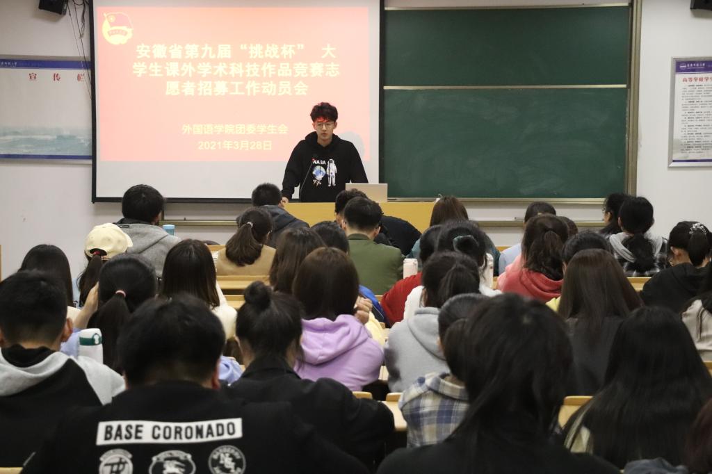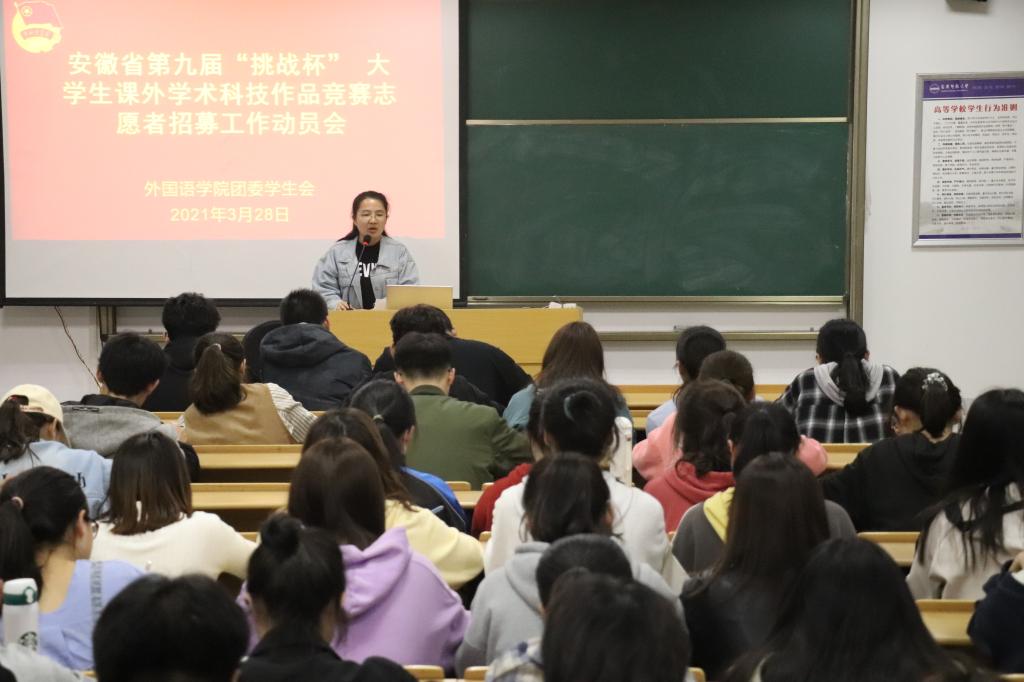 365上市公司素来提倡学生参与志愿服务工作,多次动员学生参加校内校外各类志愿活动,此次会议的目的是激励学院学子积极报名,成为“挑战杯”志愿者后工作认真负责,展现学校良好的精神风貌,为第九届“挑战杯”省赛决赛顺利举行保驾护航。