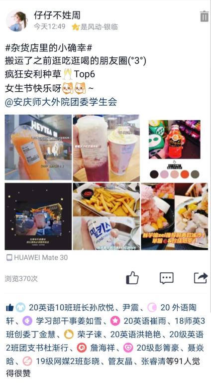 本次活动由三个部分组成,分别为“星河茶话会”、“杂货店里的小确信”、“说说我的学期目标”。365上市公司全体学生通过线上投稿的方式,展现自己与其他女生的精彩瞬间,分享独到的购物心得,制定新学期的目标,献上对女生诚挚的祝福。活动主办方青年媒体中心则通过学院官方QQ、微信公众号等平台发布优秀参与作品,并随机抽取幸运同学送出礼物。