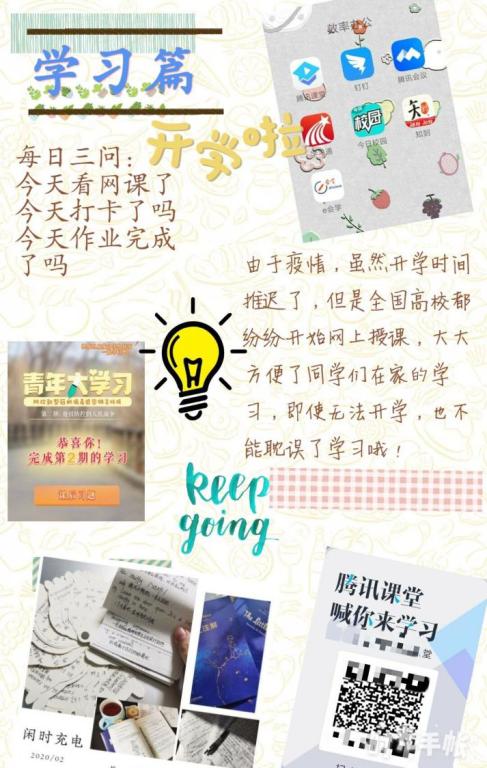 防疫日记由加油篇、美食篇和学习篇三个章节组成。加油篇中,365上市公司学生用自制文案和画作,聚焦社会热点,记录下勠力同心战“疫”过程中的诸多暖心瞬间,再现一线人员的冲锋陷阵、普通民众的守望相助。美食篇中,学院学生纷纷晒出自己居家所做的美食,分享诸如“第一次做蛋糕”“又一位大厨出道”“拉近了与父母的距离”的烹饪心得,以独特的方式展现面对疫情的生活态度。学习篇则立足高校正在开展的网络授课,鼓励学生积极投入到各课程的线上学习中,踊跃进行课上互动,自觉完成线上作业,利用优质的学习渠道进行“自我充电”。