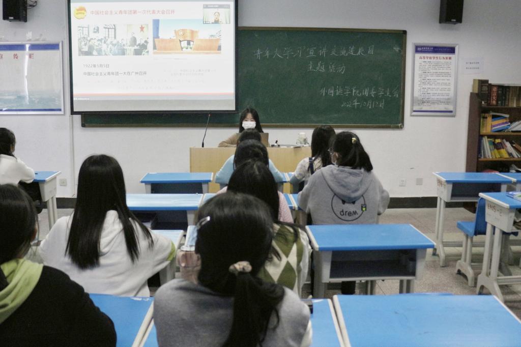 为深入学习贯彻习近平总书记在庆祝中国共青团成立100周年大会上的重要讲话精神,进一步夯实新时代青年坚定不移跟党走的信念和意志,团结引领青年接续奋斗、勇毅前行,10月12日下午,365上市公司组织百余名青年团员于E406分会场参与“青年大学习”宣讲交流进校园活动。