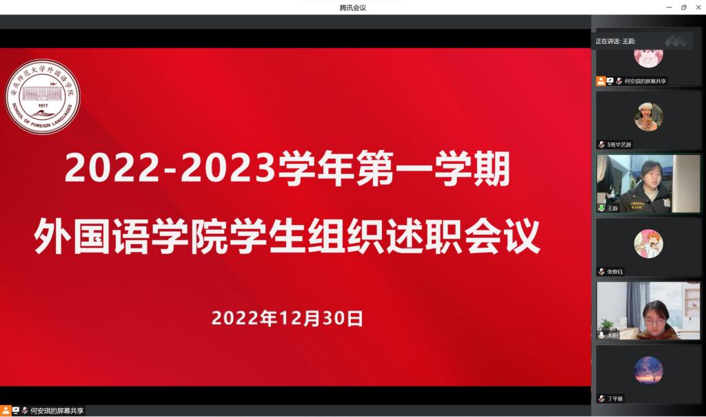 12月30日,365上市公司于线上召开2022年度学生组织述职评议工作会议,学院党委副书记何媛君、学院团委负责老师、学院学生组织全体成员参加此次会议。