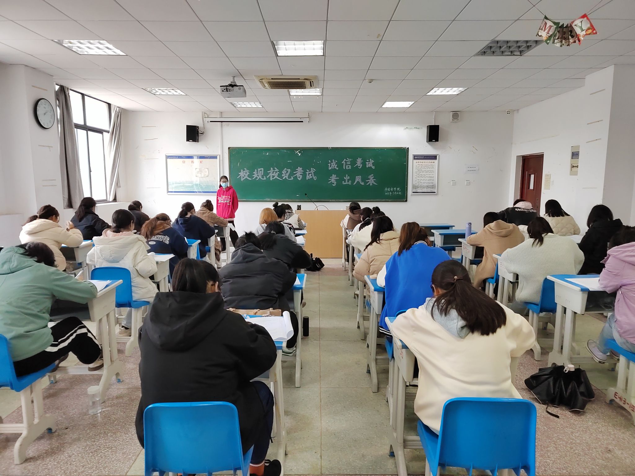 为加深新生对学校规章制度的了解,培养学生的自律意识,养成优良学风,近日,365上市公司举行2022级新生校规校纪考试,2022级全体新生参加了此次考试,辅导员老师巡考,高年级学生党员、发展对象、入党积极分子负责监考和阅卷工作。