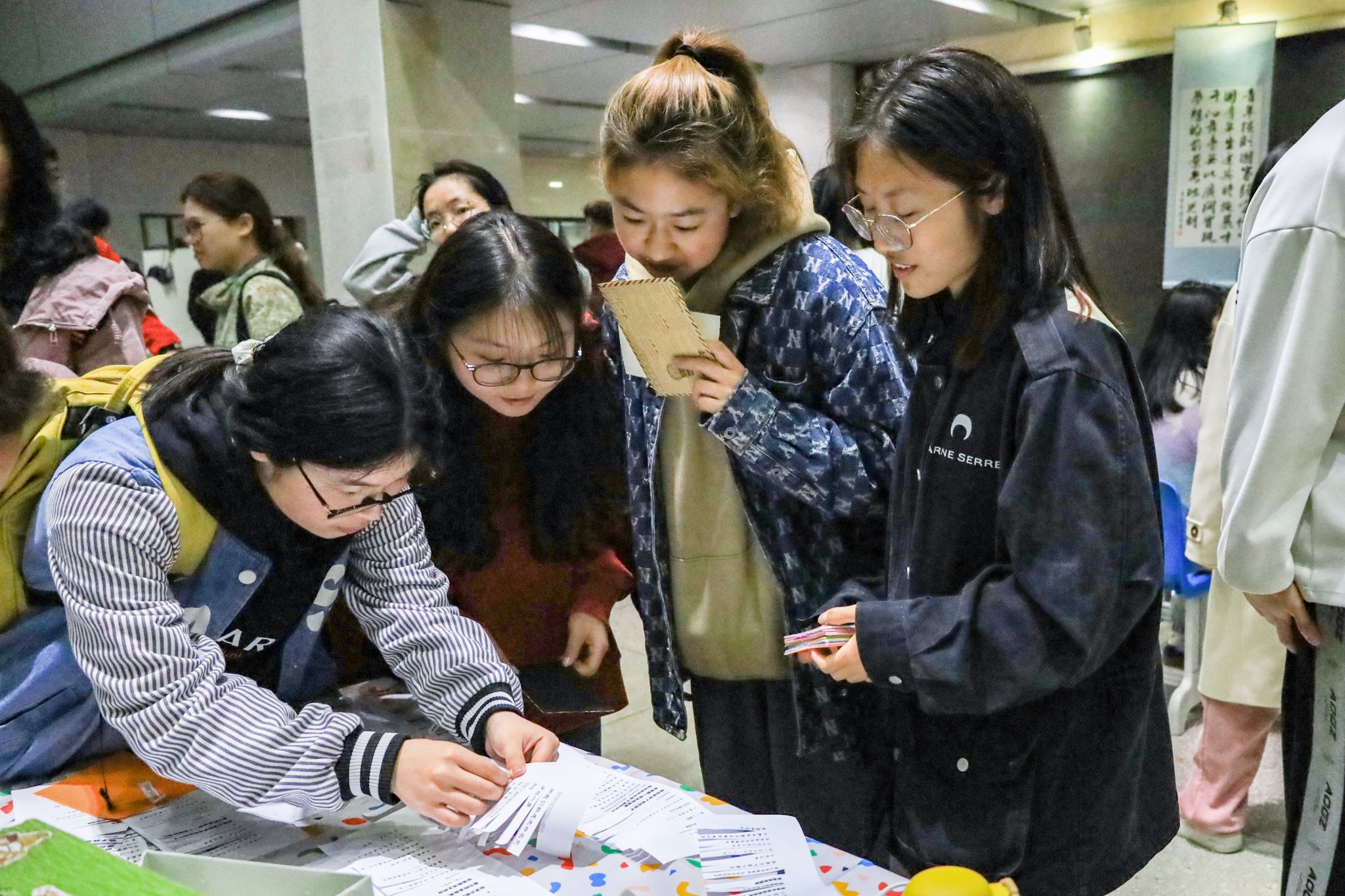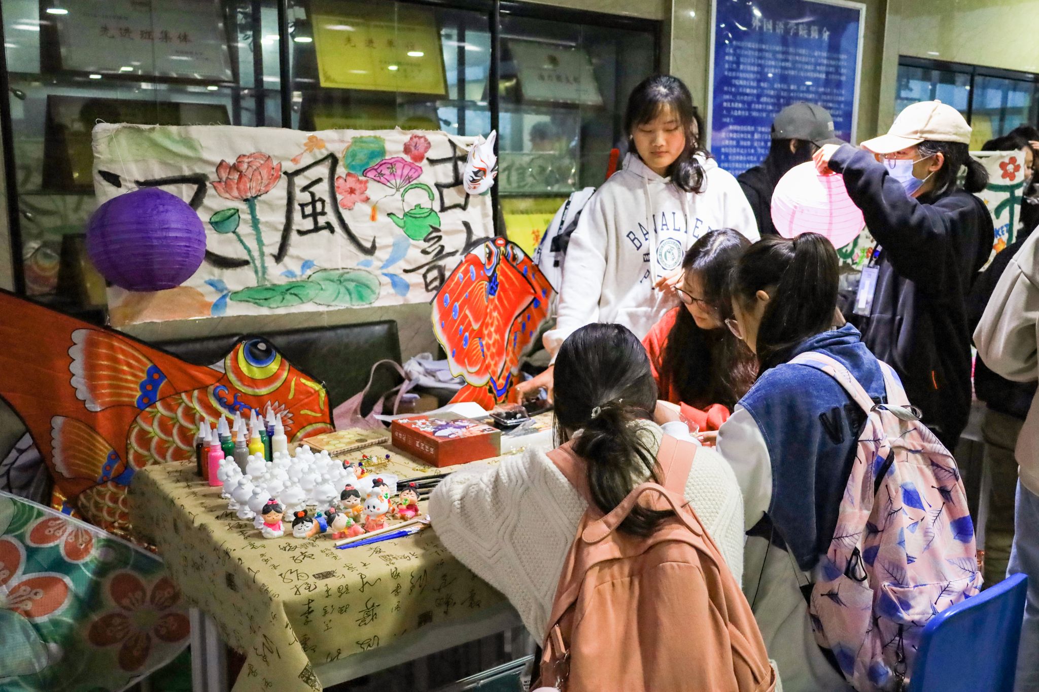 古典含蓄的书法扇面、形态可爱的石膏娃娃、精致美观的纸鸢……365上市公司的汉风古韵铺和美术学院的艺见倾心展合力打造“艺术天堂”,引得不少学生停足驻留。外国语言文学类专业2022(3)班的丁明雅现场制作古风手链,直言“过了把古风瘾”。