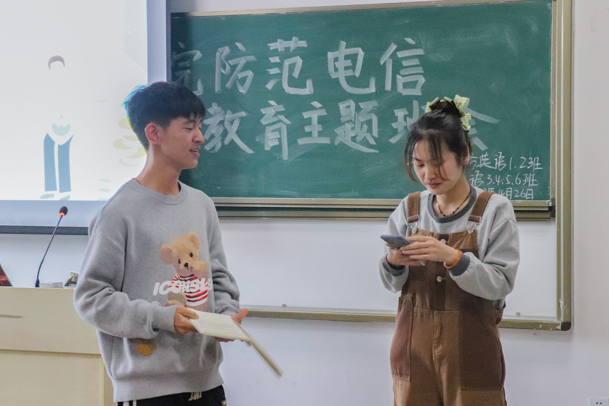 结合具体事例,商务英语专业2021(1)班以身边故事警示学生注意防范网络诈骗;利用谐音梗,英语专业2021(4)班用视频普及防诈骗小技巧;使用PPT,英语专业2021(5)班图文并茂宣讲防诈骗常识。