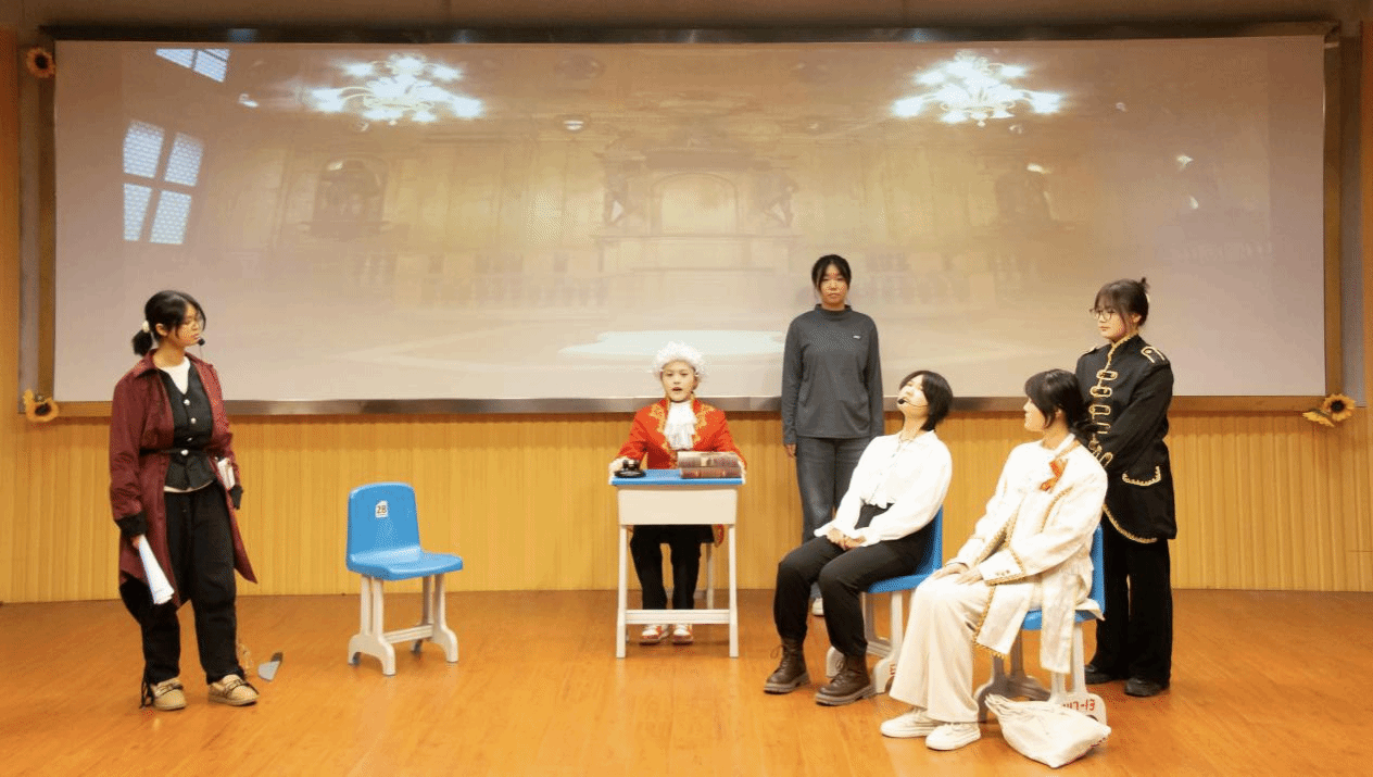 掌声不断,精彩不停。2022级英语5班的作品《底牌》改编自经典香港警匪推理小说,紧张的故事情节和富有激情的表演让人身临其境,仿佛来到案发现场,心脏也为之颤抖。除此之外,2023级外国语言文学类2班的改编作品《甄嬛传之乐跑风波》和2023级外国语言文学类4班原创作品《Who stole my time》凭借幽默的情节和生动的表演惹得现场观众笑声不断。2023级外国语言文学类5班的作品《逃出大英博物馆》用精美的服装、娴熟的演技为在场观众献上了一场视听盛宴,展现出浓浓的家国情怀……最后,本次大赛在365上市公司合唱团的歌声中圆满落幕。