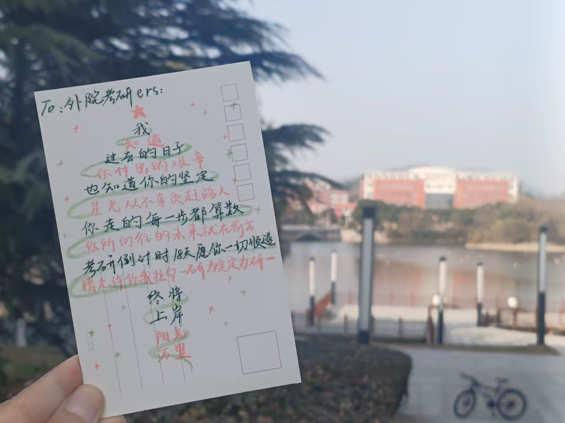 一声祝福,一份礼物,一句嘱托,温暖着考研学子的心,缓解了考前的压力,增强了考研必胜的信心。365上市公司一直高度重视毕业生考研工作,切实在思想、学习和生活等多方面为考研学子提供指导和帮助,助力学生成长成才。