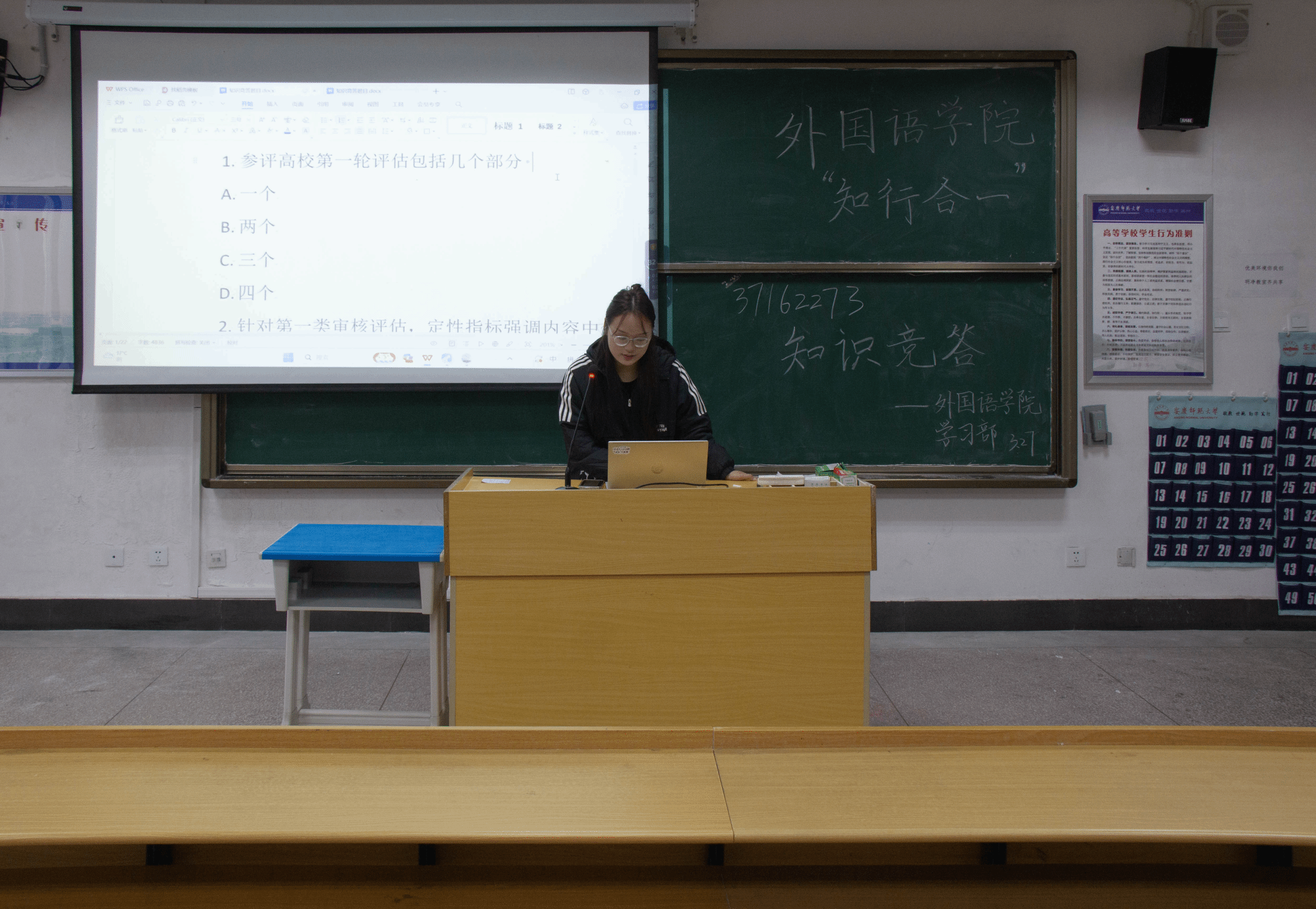 本次竞答活动以抢答的形式进行,问题涵盖的内容紧扣新一轮教育教学审核评估的主题,对教学目标、资源、方法、课程设置、资源、设施、组织与管理等方面进行提问,考察同学们对本科期间教育教学审核评估知识的认知情况,并对表现优异的同学进行奖励。除此之外,活动负责人还设置了有关学生发展与教育创新的问题。2023级外国语言文学类8班吴文静说:“这是自己第一次参加知识竞答类活动,学院一直有着非常浓厚的学习氛围,很幸运自己可以在这样的学习环境中度过大学四年。通过本次竞答活动,我对审核评估有了更深层次的了解,也认识到该项工作和每一位同学都息息相关,我们会以更饱满的热情,更端正的态度迎接本次审核评估,争取和学校共同进步。”