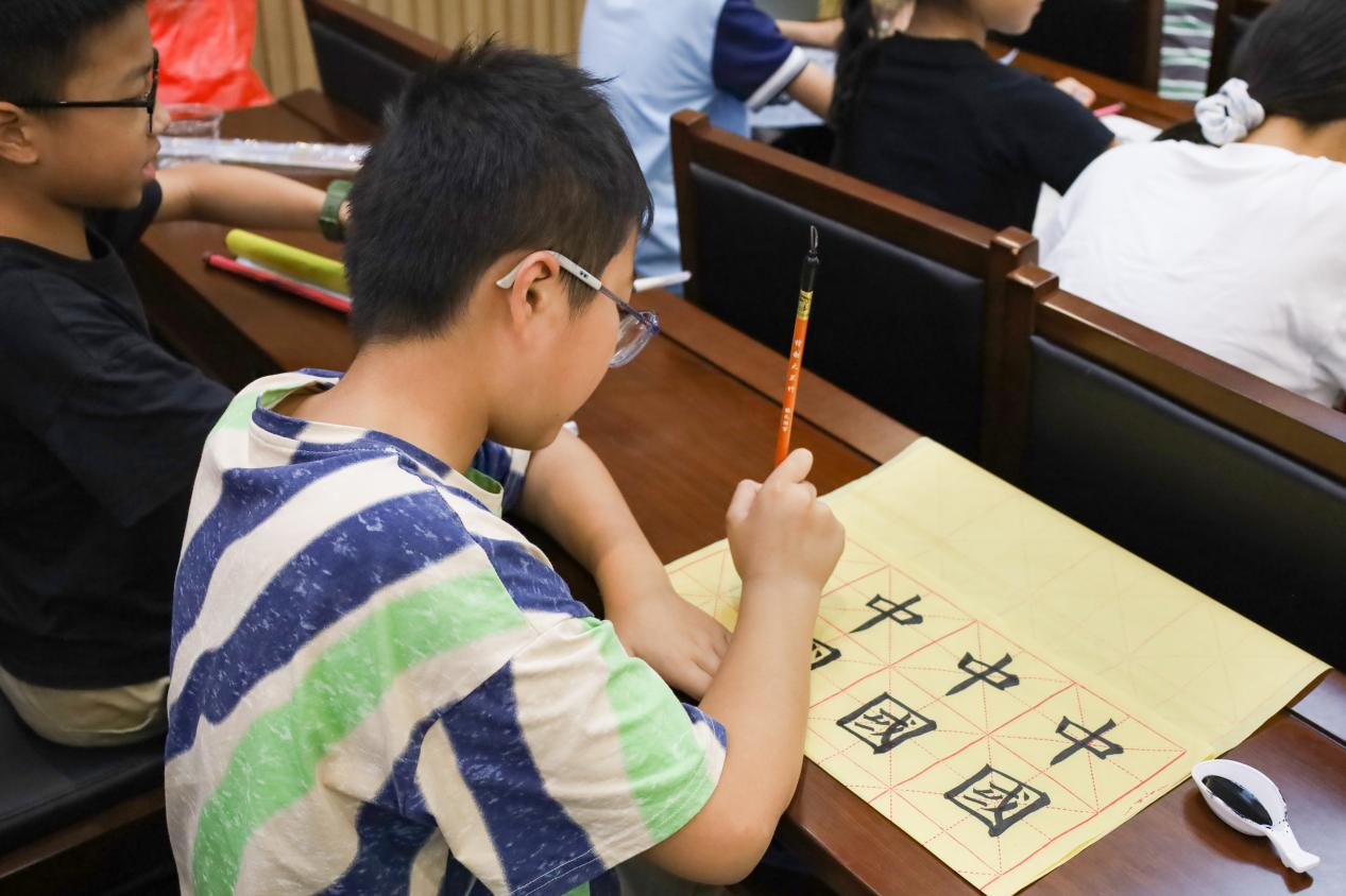 将完成的书法作品交至规定位置后,五年级学生凌宇辰向周围学生分享着他的书法书写技巧。“我学习书法已经三年了,了解很多书写小技巧,现在我的字迹也经常受到老师的表扬。”凌宇辰直呼,听到实践团将带领学生们开展书法课程学习时,自己便开始期待了。“书法让我变得更加细心耐心,我也从中对中国传统文化有了更深入地了解,以后我会一直学习书法。”他说。