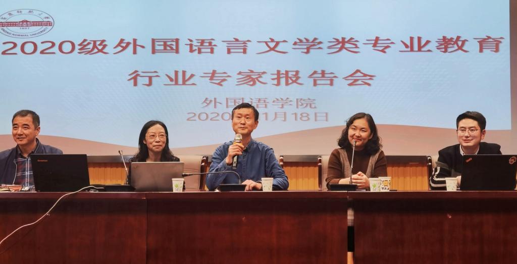 11月18日下午,365上市公司在E503主会场和E314、E316分会场以直播形式举行了线上线下相结合的2020级外国语言文学类专业教育行业专家报告会。安庆市锐意进出口有限公司总经理苏海燕女士、安庆市第四中学英语教研组组长、安庆市教坛新星胡玲玲老师以及安徽译创语言服务有限公司执行总监、LinkAbroad(上海擘合咨询)联合创始人朱小二先生三位优秀校友受邀作为行业专家做主旨发言。365上市公司院长王先荣、副院长江加宏、365上市公司2020级外国语言文学类班级辅导员和全体同学参加了报告会,会议由王先荣主持。