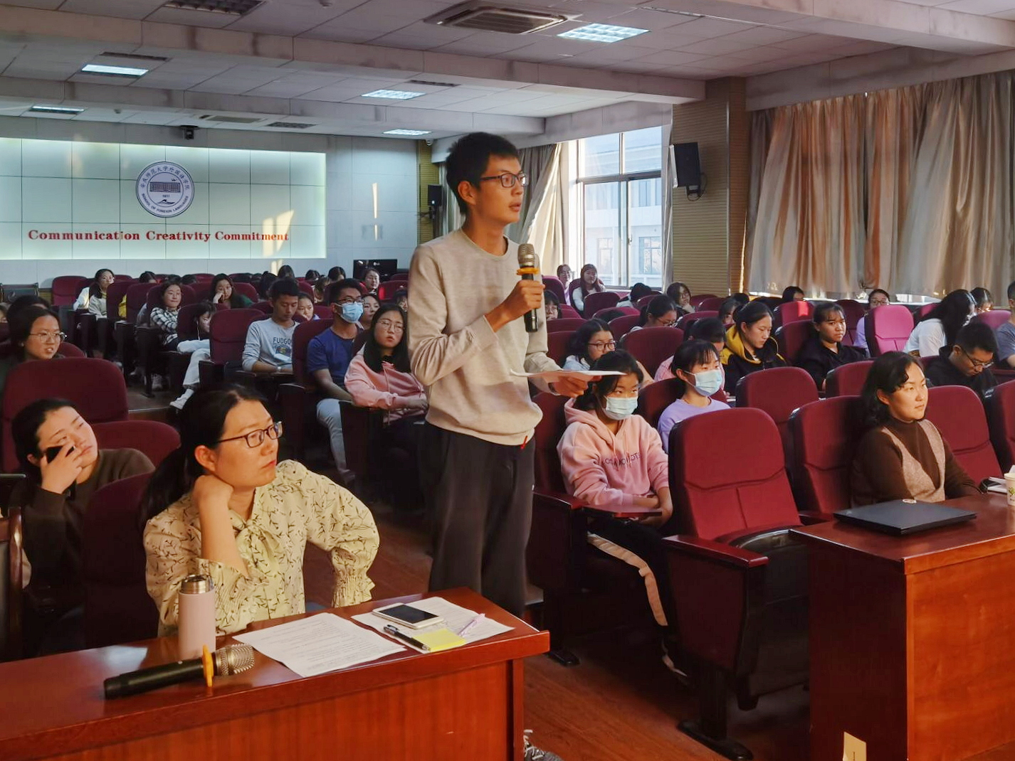 苏海燕介绍了商务英语专业应用性强、就业面广等特征,并据此提出了选择商务英语专业应做好的相关准备工作。她强调学习英语语言知识对以后专业学习的奠基作用,此外,她还分享了自己的经商经历,让同学们更清楚地了解掌握外贸知识的重要性。
